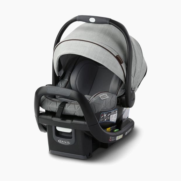 This Graco infant car seat is part of their Premier Midtown collection, tailored with premium materials and design. It features a front-adjust, no-rethread harness system so the headrest and harness can be adjusted together (in one motion) while your little one is in the seat. The Silent Shade canopy and privacy drape adjust quietly without disturbing baby, and the one-hand adjustable handle makes getting your little one in and out easier.